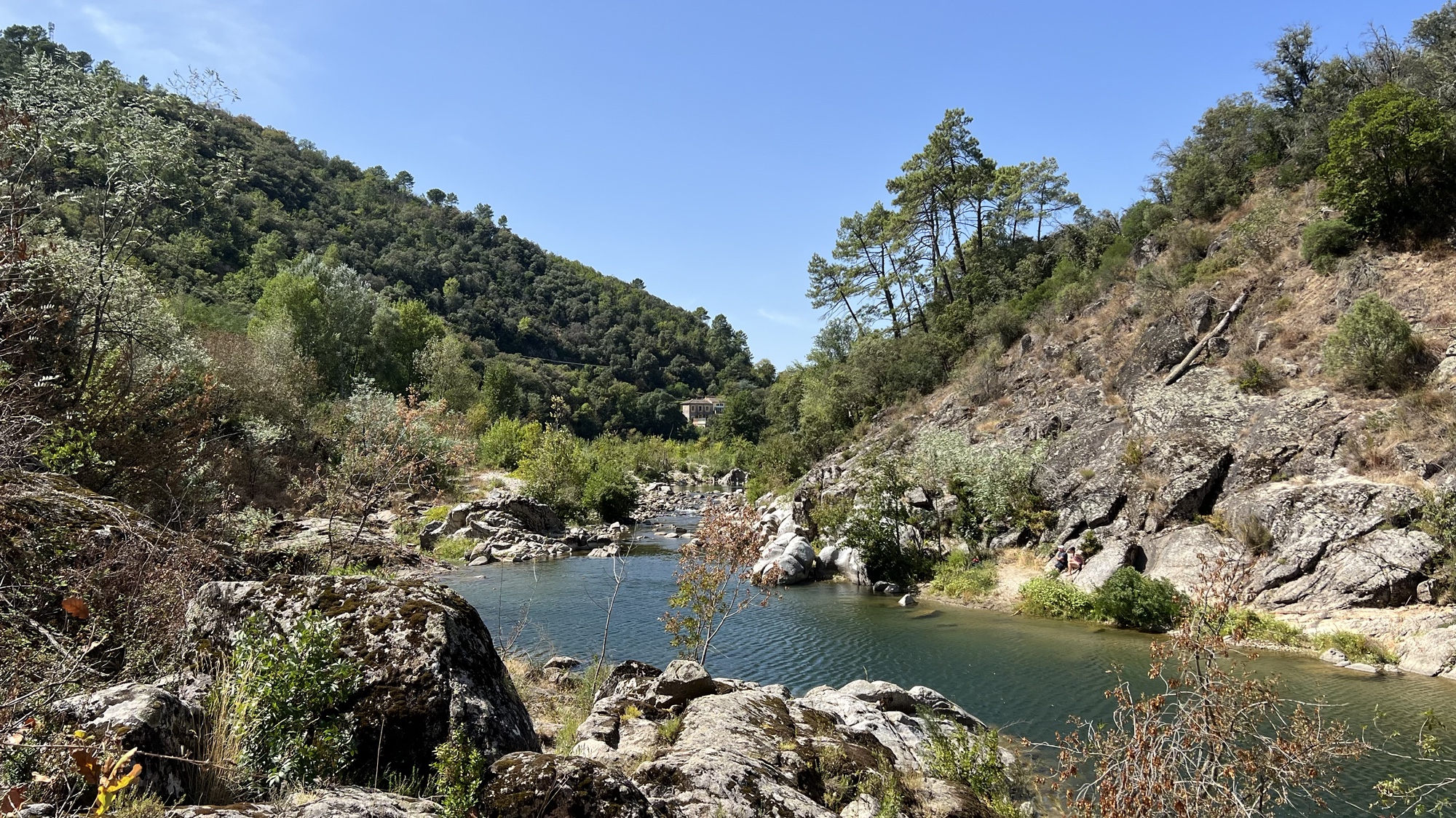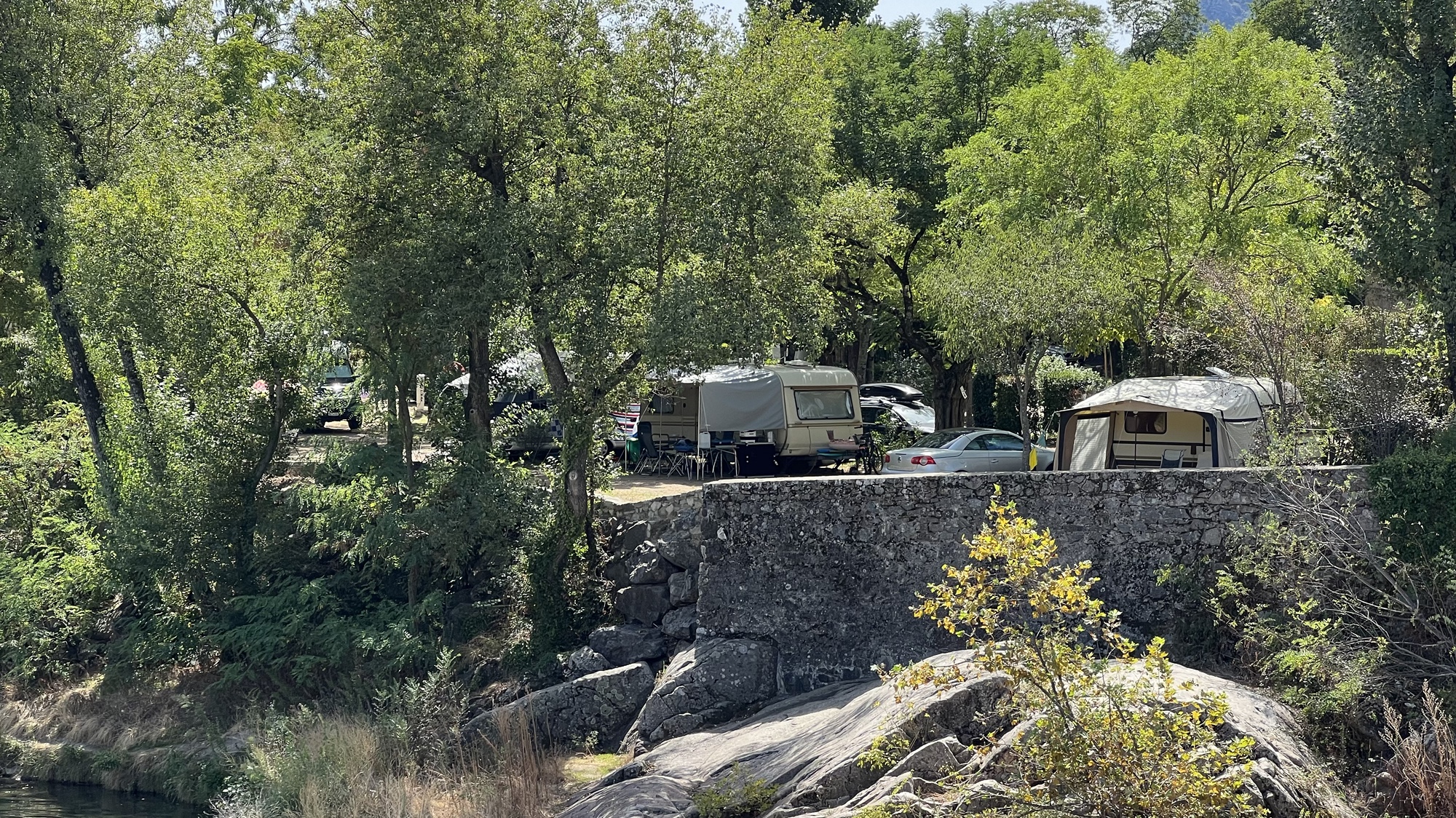 Am Morgen ging es noch für die nächsten Tage einkaufen, ansonsten passierte nicht viel. Während die Kinder am Wohnwagen sich gelangweilt haben, gingen Conny und Marc am Bach baden.