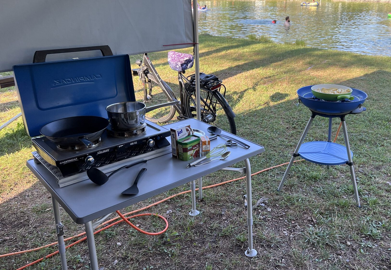 Einkaufen und ansonsten auf dem Platz und im See verweilen, so sah der Rest des Tages aus. Da wir hier länger bleiben wurden sowohl das SUP als auch der Grill aufgeblasen bzw. aufgebaut. Den Grill haben wir auch gleich als dritte Kochstelle mit verwendet. Zwischendurch hatten wir auch ein Haustier.