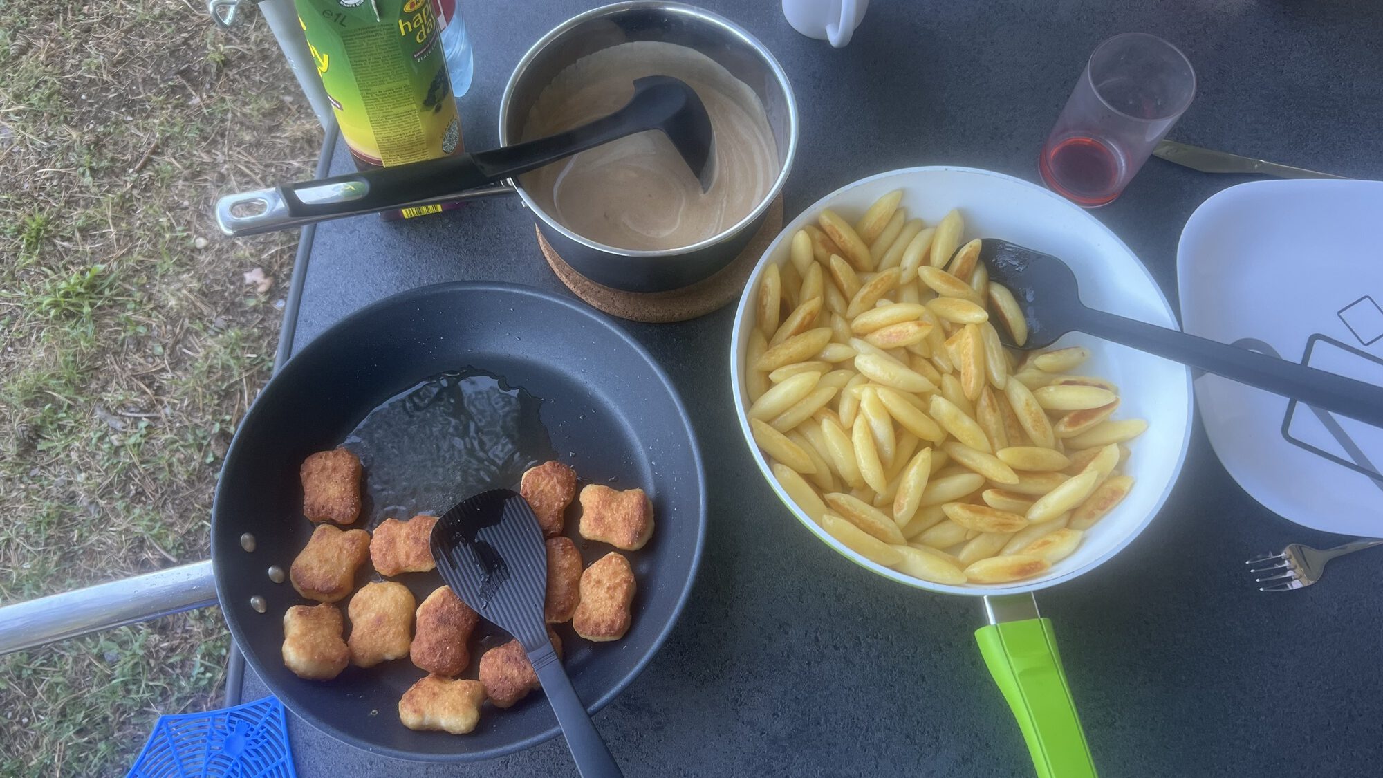 Heute Nacht mal kein Gewitter oder Regen. Dafür für frische Brötchen zu spät aufgestanden. Mit Toastbrot und Rührei mit Schicken hatten wir trotzdem ein ansehnliches Frühstück.