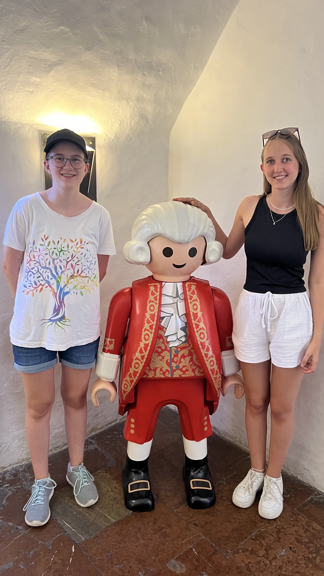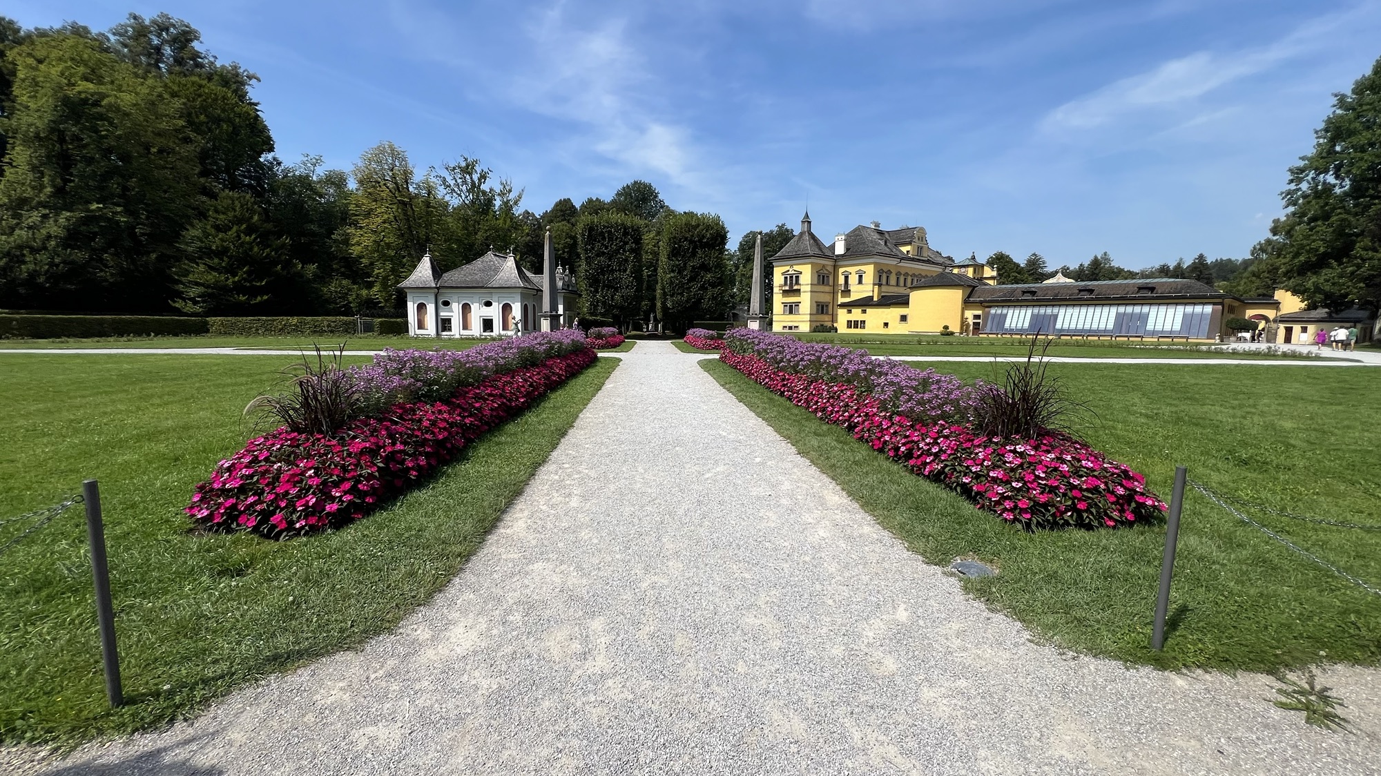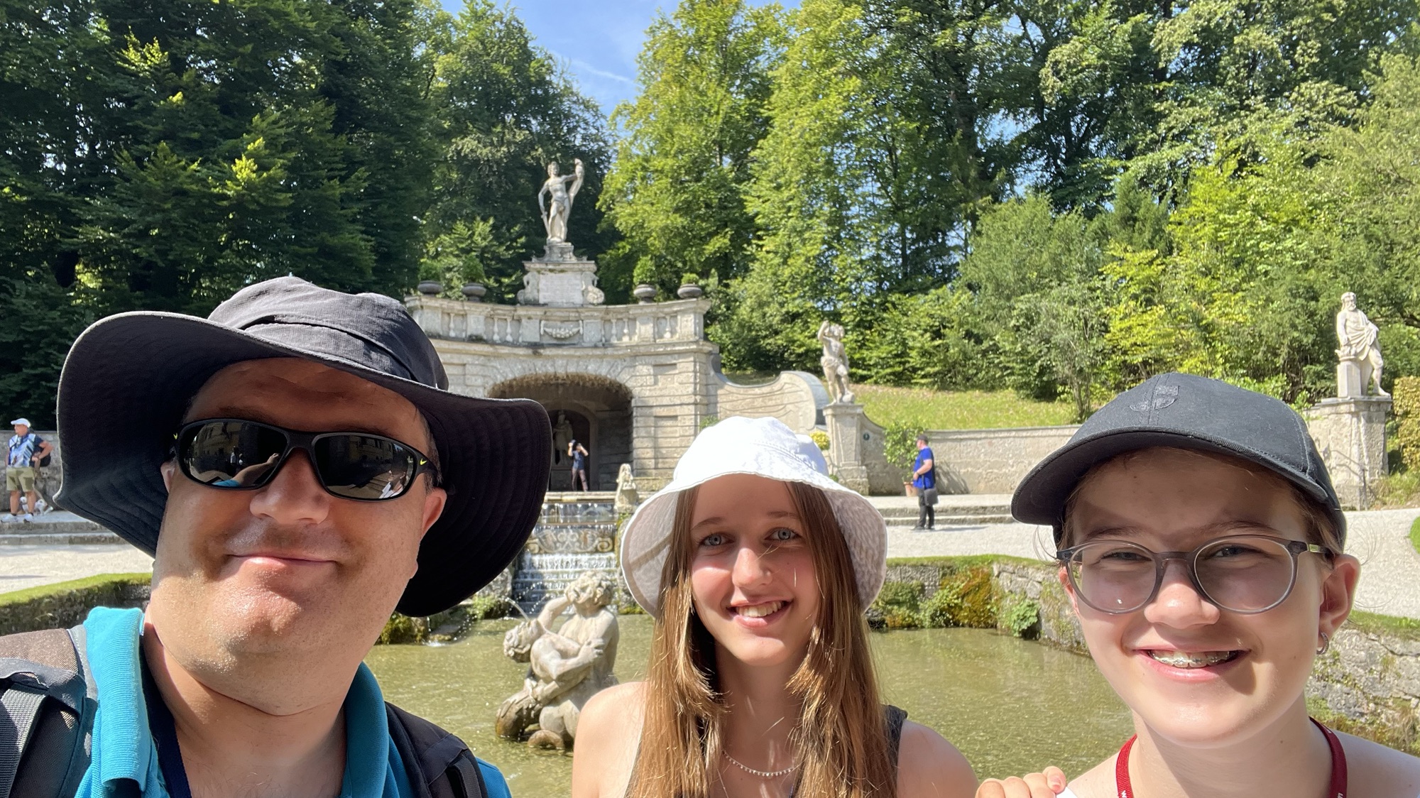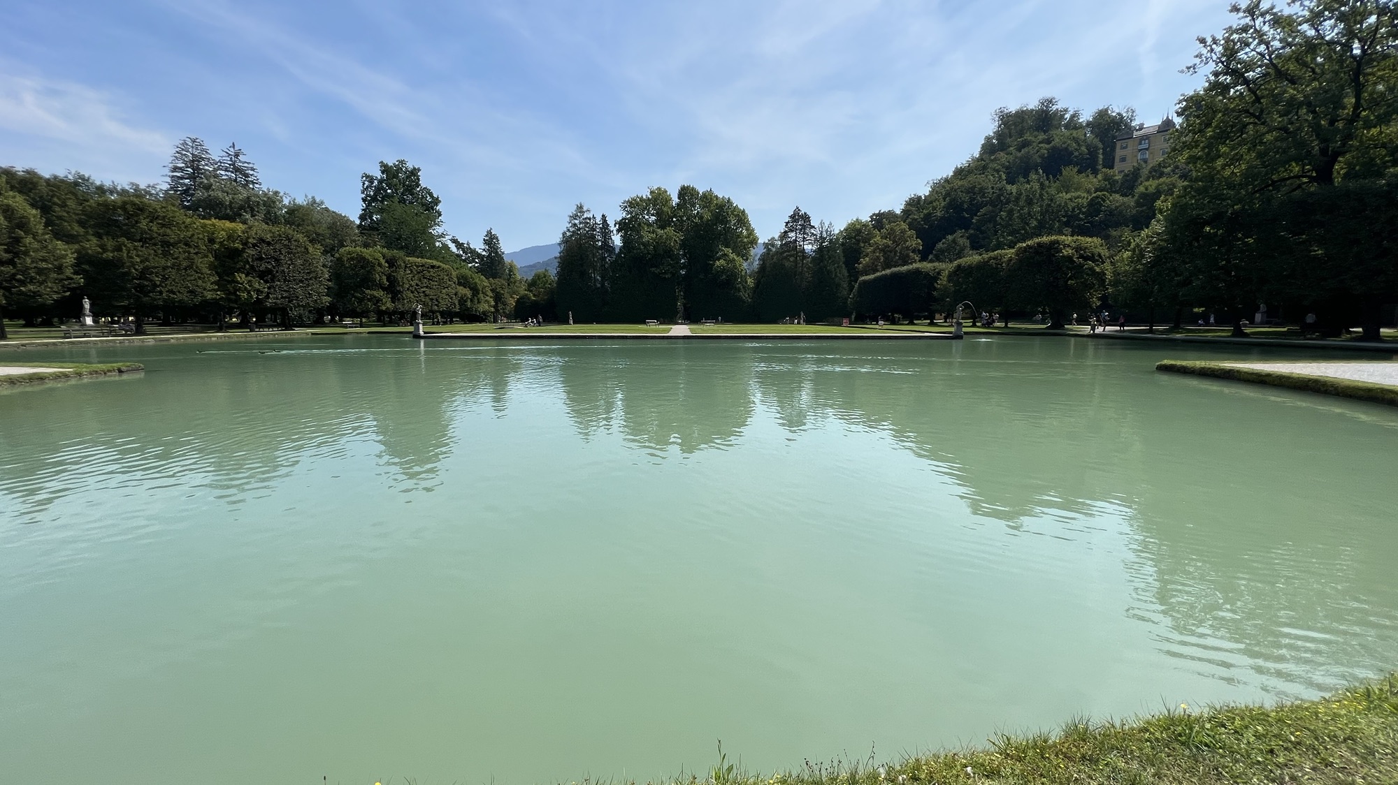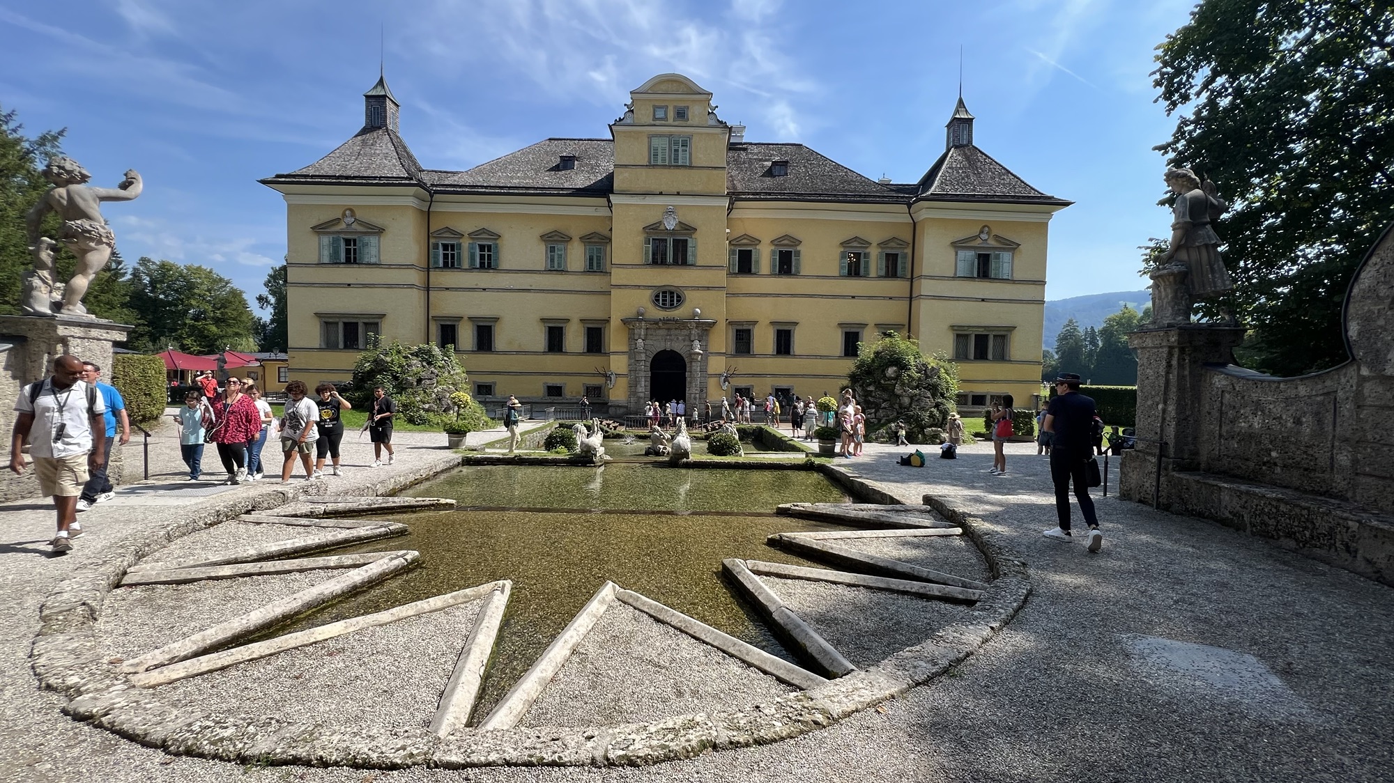 Nach dem Frühstück ging es los zum ersten Teil der Sight Seeing Tour durch Salzburg. Als erster Punkt stand das Schloß Hellbrunn und die dazugehörigen Wasserspiele auf dem Programm. Dank der Salzburg-Card konnten wir kostenlos im klimatisierten Bus vom Campingplatz mit einmal Umsteigen direkt zum Schloß fahren.