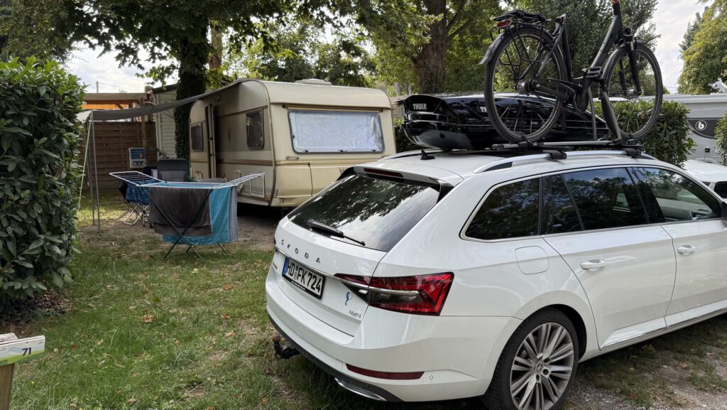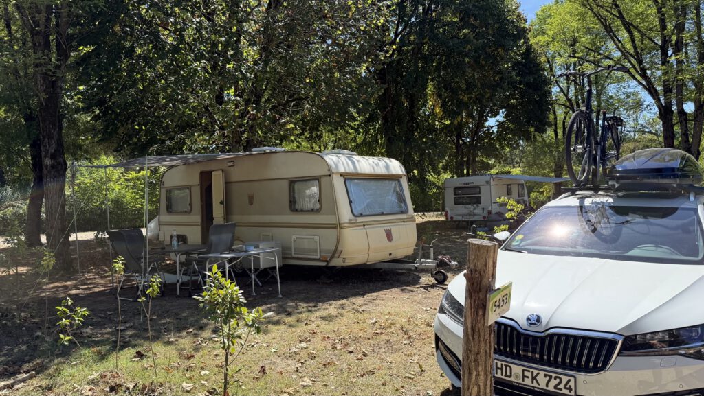 Nach 294km / , 3h50min konnten wir am Campingplatz nahe Toulouse den Pool ganz alleine genießen.
